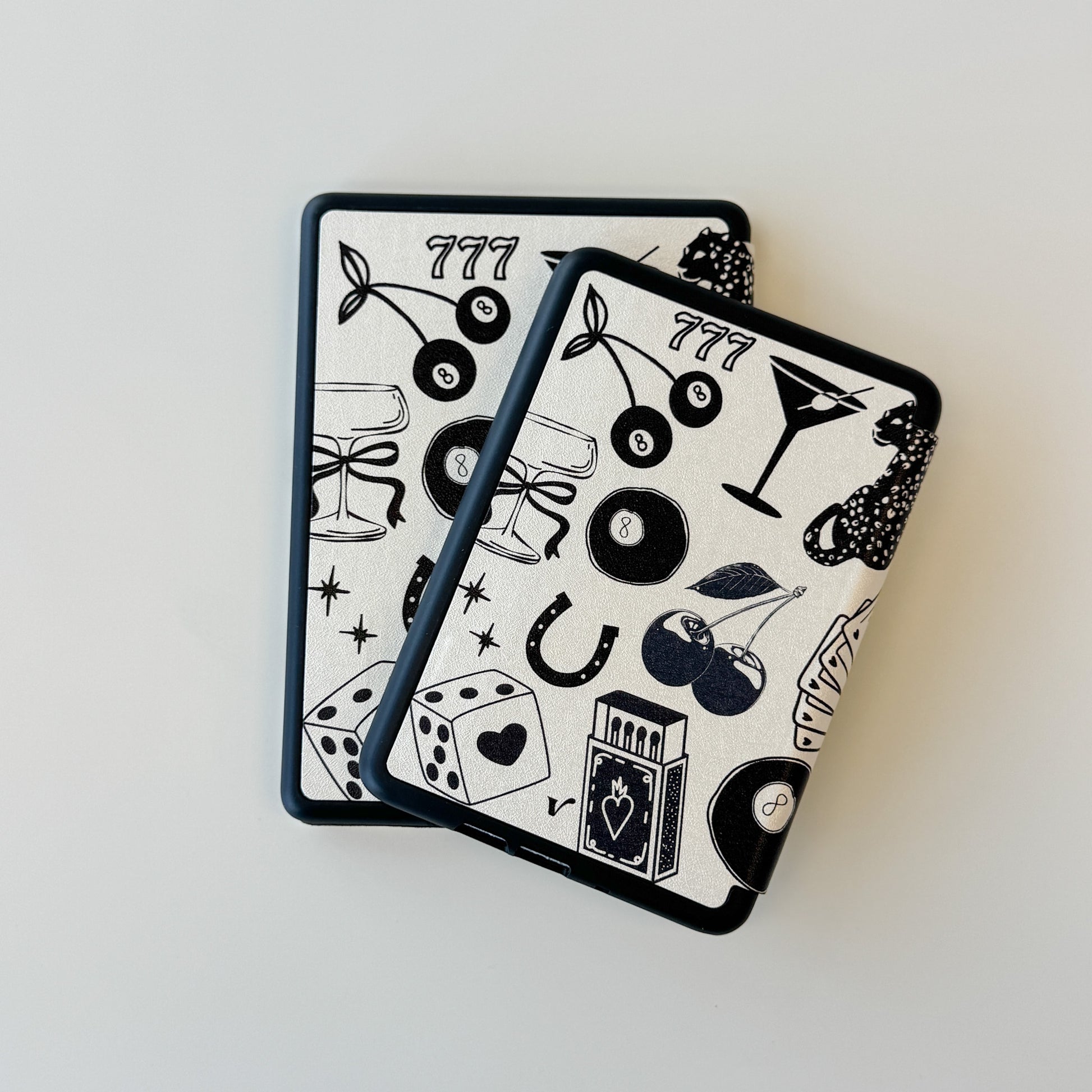 Say hello to your new bookish bestie — the Lucky Girl Syndrome Kobo Case! Covered in retro tattoo-style art with cherries, martinis, dice, and stars, this Vegas aesthetic Kobo case is perfect for lucky girls, manifesting babes, and readers who love a little edge with their smut.