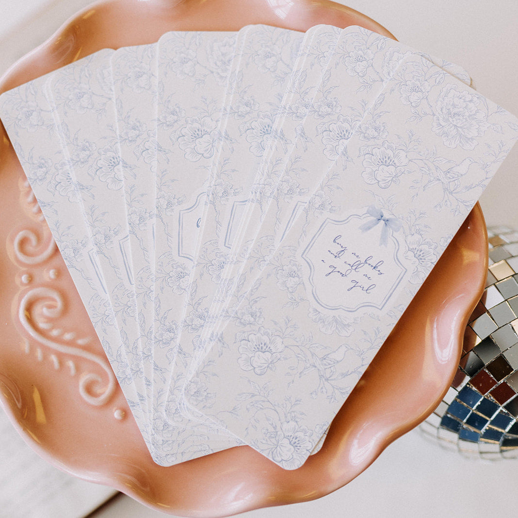 For the girls who read and behave… at least until the next chapter. The Good Girl Edit Bookmark is a delicate balance of elegance and sass, featuring a soft blue floral pattern with sweet birds and a charming label that reads, “buy me books and call me a good girl.”